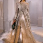 Leaning into a contemporary silhouette, Beyza symbolises splendour and extravagance. Arranged in a dazzling linear pattern, the gilded sequins add a high-shine sparkle to the georgette kaftan. Meticulously tailored, this piece will elevate your festive celebrations with a touch of glamour.