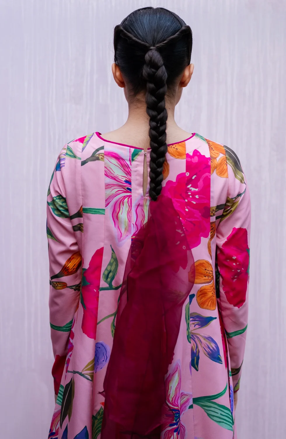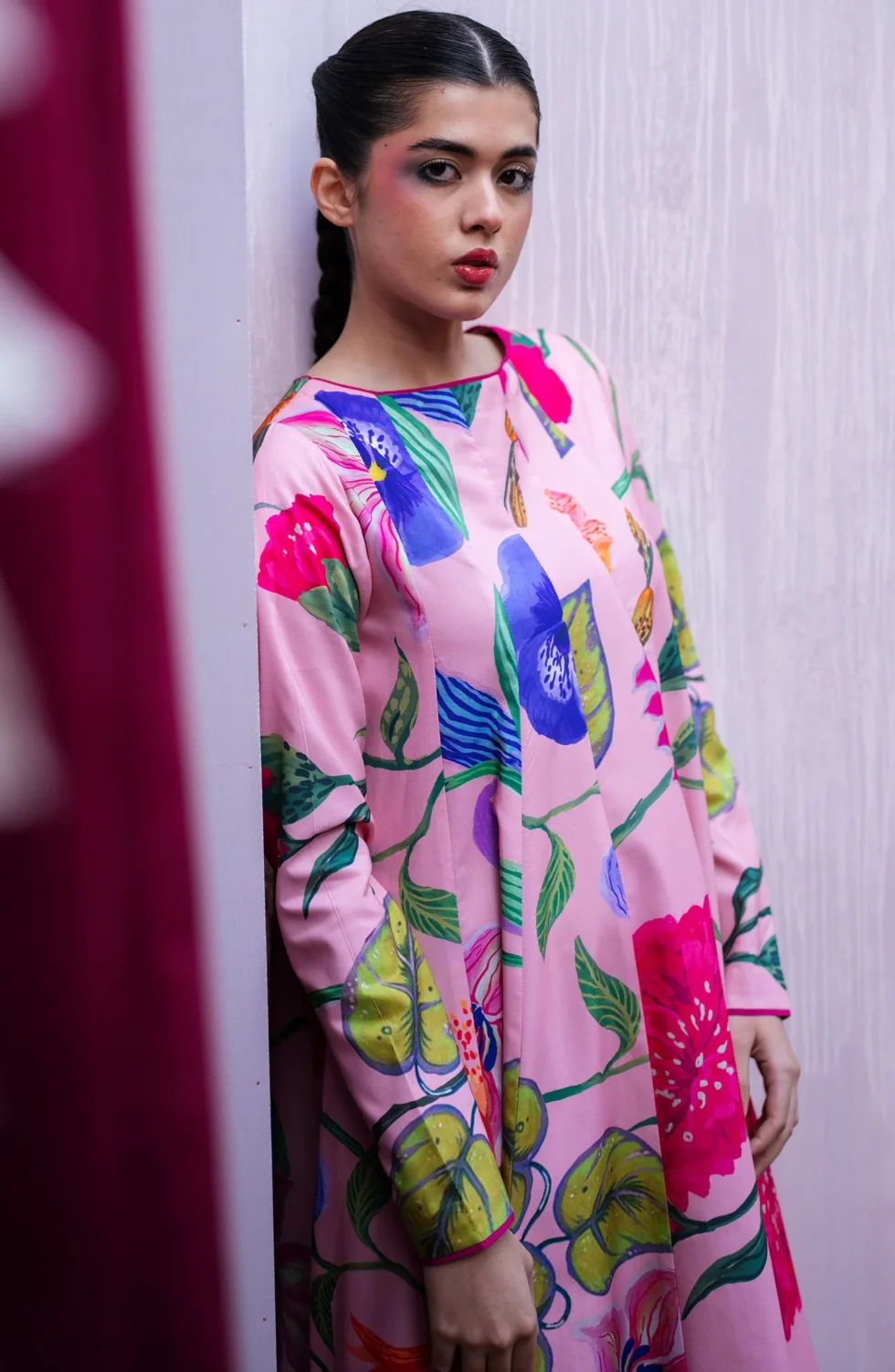 Intricate layers of color converge to create a look that is both commanding and poetic.
