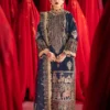 Dipped in the inkwell of modern regalia, this captivating teal ensemble is a harmonious blend of sophistication and artistry. The front-open embroidered shirt is a visual masterpiece, adorned with intricate light gold zariwork, shimmering light gold sequins, and delicate teal threadwork that exudes elegance in every stitch. Complementing the ensemble is a luxurious velvet trouser, adding a touch of opulence, and a finely embroidered dupatta that completes the look with effortless grace. This ensemble is a symphony of timeless charm, perfect for those who seek to make a statement of refined luxury.