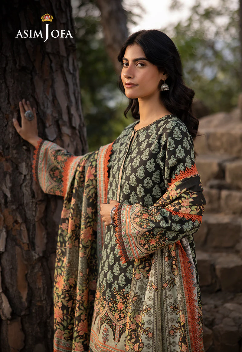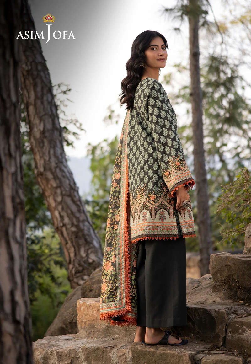 A striking charcoal ensemble, where deep tones blend with intricate prints, creating a bold and sophisticated look. The printed dupatta adds movement and fluidity, enhancing the design with a modern and chic touch perfect for those who appreciate a more dramatic style. Color: Charcoal Size: Unstitched
