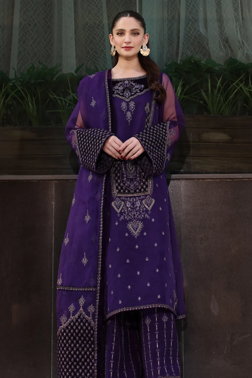 Organza Shirt with embroidered front, embroidered sleeves,embroidered front back chok lace and embroidered daman motifs.