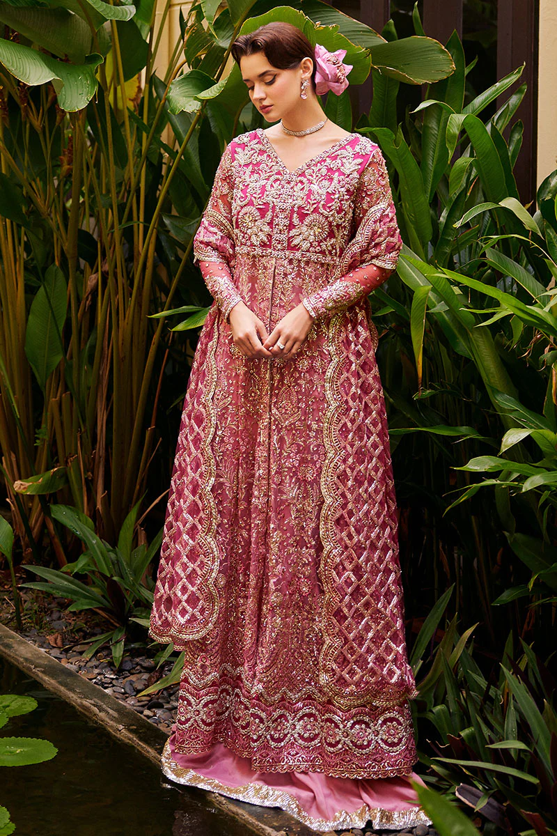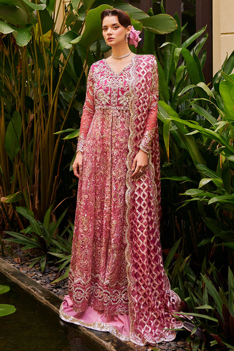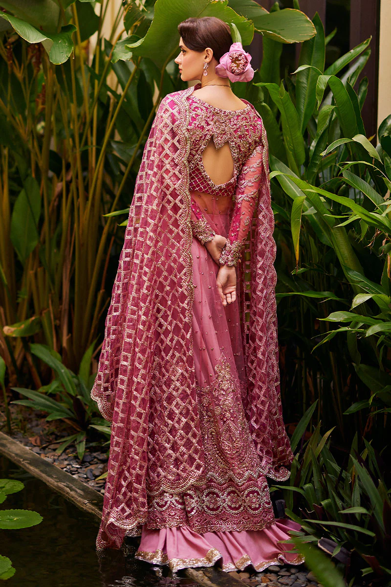 Embark on a journey of grace and allure in this pink ensemble, adorned with meticulous hand embellishments and glistening sequins. The ensemble’s elegance is heightened by a sequinned net dupatta, casting an ethereal radiance, while harmonizing flawlessly with a dyed raw silk sharara.