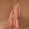 • Three piece raw silk set, featuring delicate embroidery on the culottes and on embellished organza dupatta.