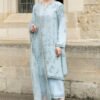 Indulge in elegance with this shirt featuring pure resham embroidery, enhanced with hand-embellished Swarovski crystals, tilla, dabka, and naqshi gemstones. The shirt is finished with laces on the daman and hem, while the pants are adorned with organza embroidered and hand-embellished borders. The ensemble is completed with a dupatta showcasing a diagonal color-blocked design, sequins detailing, and a four-sided silk embroidered border for a touch of sophistication.