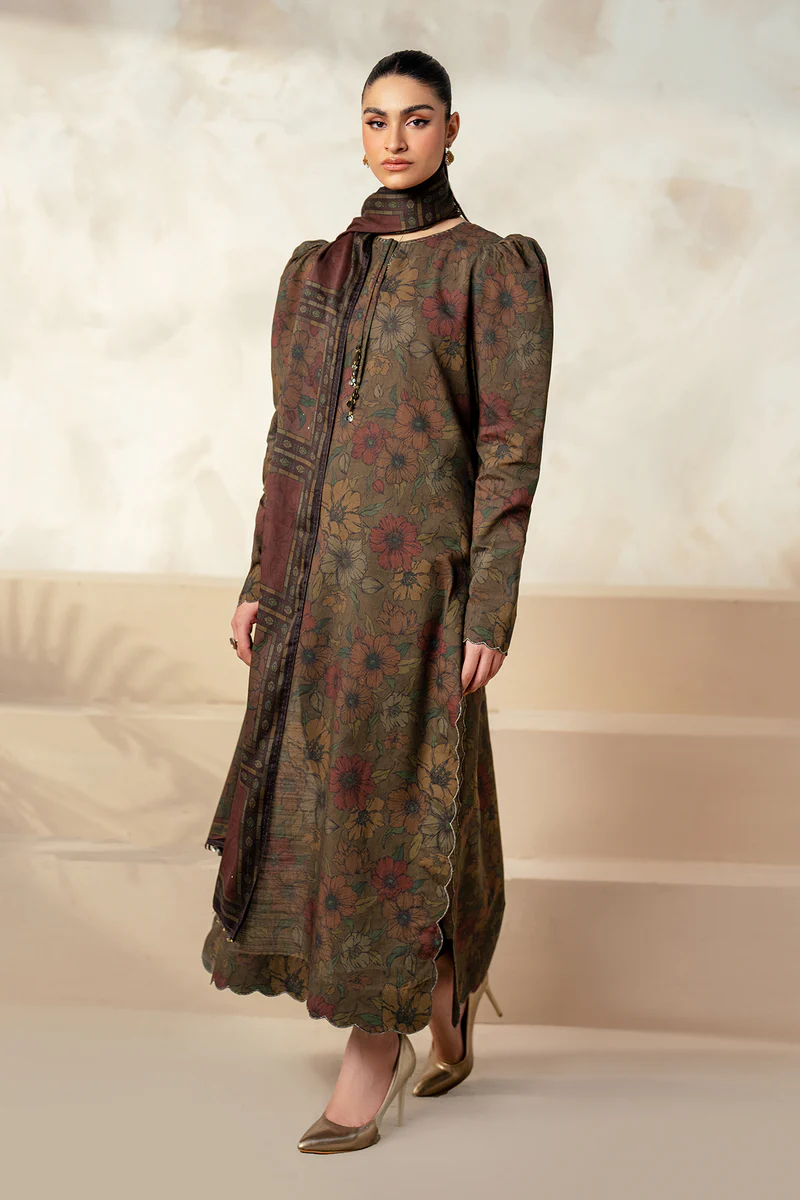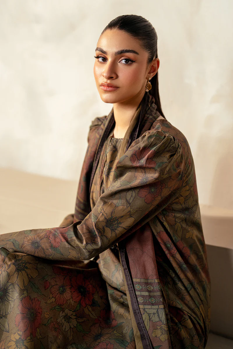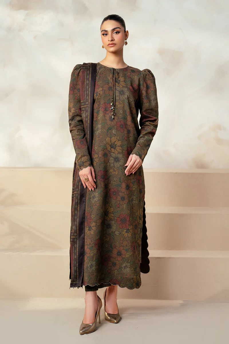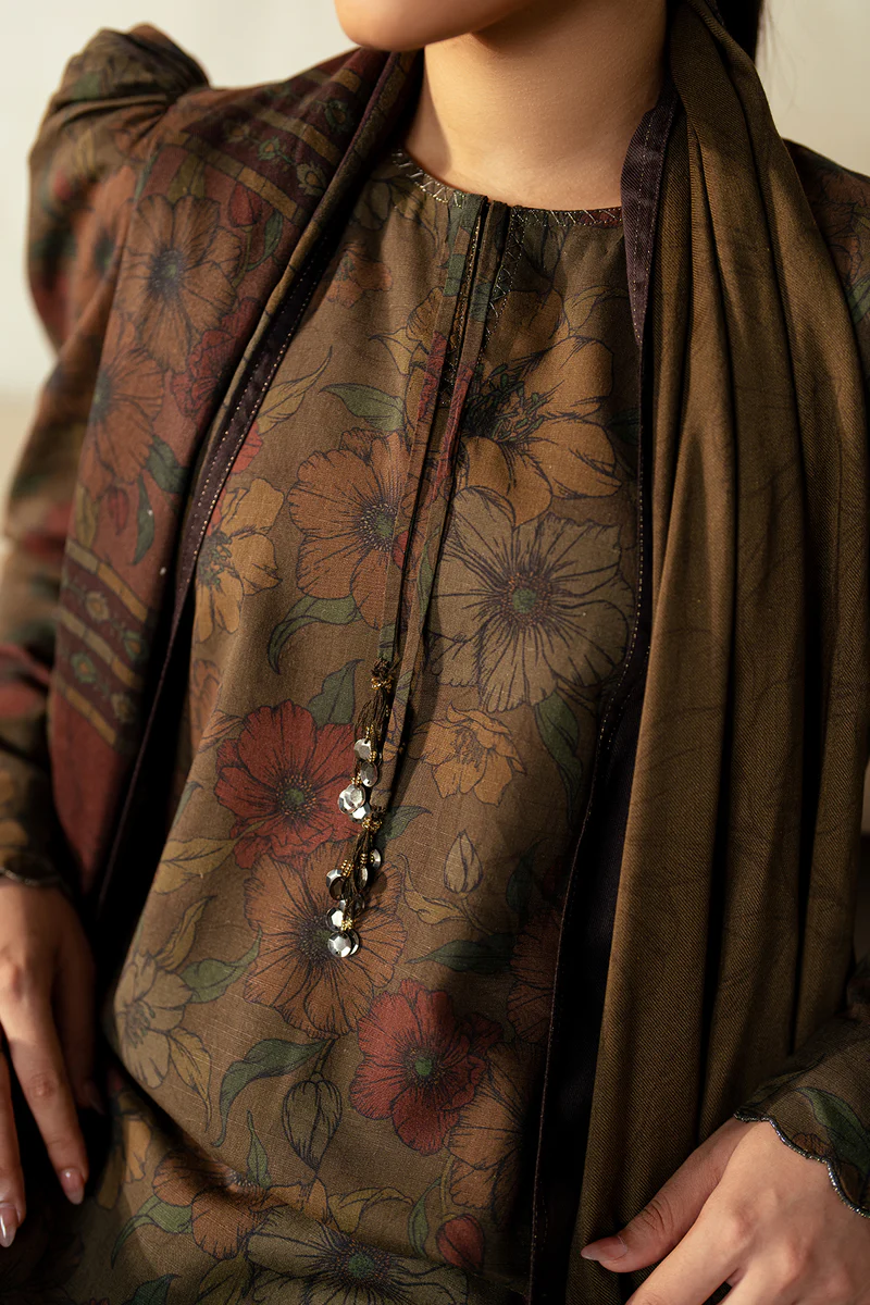 This captivating digital printed slub khaddar shirt and trouser set is paired with a twill shawl, offering a seamless blend of style and comfort, designed to impress at any social gathering. Type: STITCHED Size: XS,S,M,L,XL