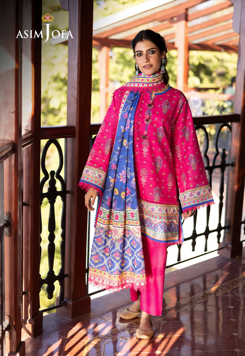 Feminine and lively, this pink design features a perfect balance of complementary prints that flow harmoniously across the fabric. The printed dupatta in a contrasting shade gently enhances the design with its floral design, making this ensemble a chic and elegant choice for any occasion.