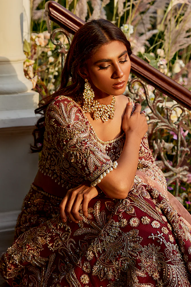 LIPSTICK PINK NET LEHENGA CHOLI WITH ALL OVER EMBROIDERY AND HAND EMBELLISHMENT.